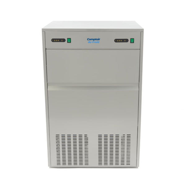 Voici notre modèle le plus performant, conçu pour les établissements qui ne peuvent envisager aucune rupture de stock de glace. Avec une production massive de 100 kg par jour et un bac de stockage géant de 60 kg, cette machine est la solution ultime pour une production de niveau industriel.